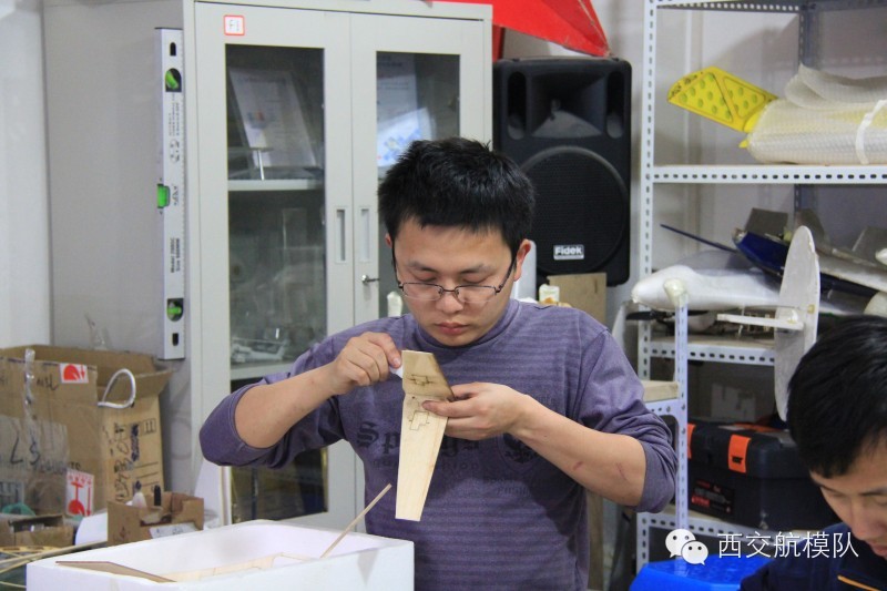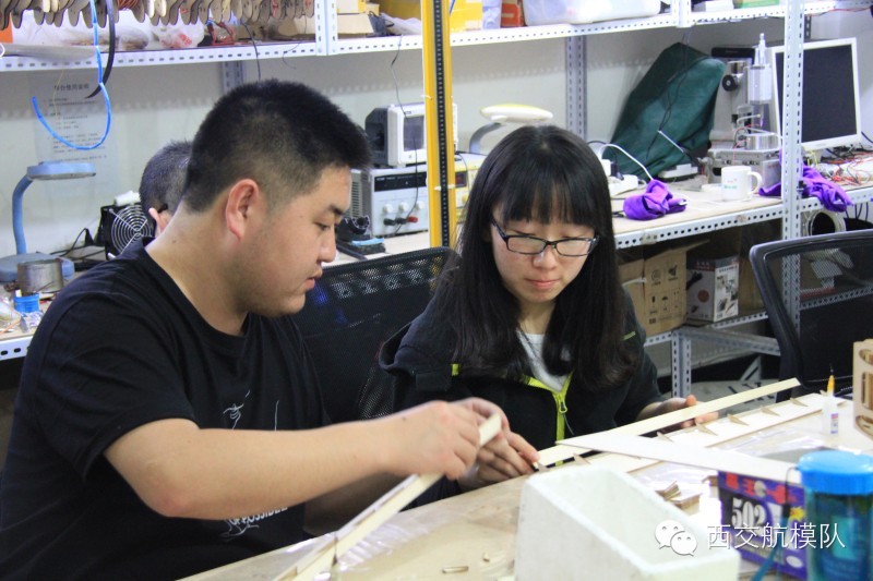 航模队也有女生哦,而且战斗力很强啊。机翼蒙板已经切好了。